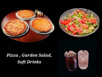 Cheese, Sausage, Pepperoni, Garden Salad, Soft Drinks
