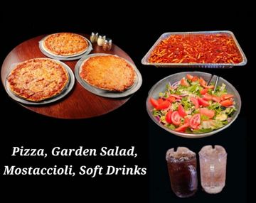 Cheese, Sausage, Pepperoni, Garden Salad, Mostaccioli, Soft Drinks